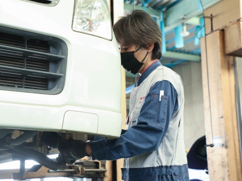 軽乗用車からトラック・商用バンまで、幅広い車種を扱う当社では、希望者に月数回の大型車整備を任せます。