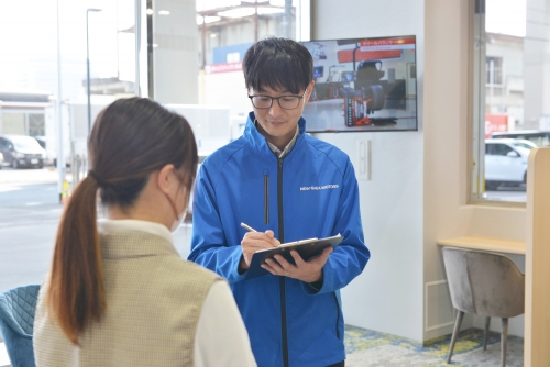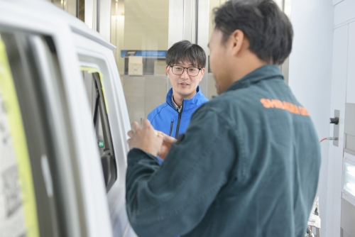 車だけではなく、人にも優しい環境を心掛けており、安心できる職場環境下で作業できるようにと考えております。